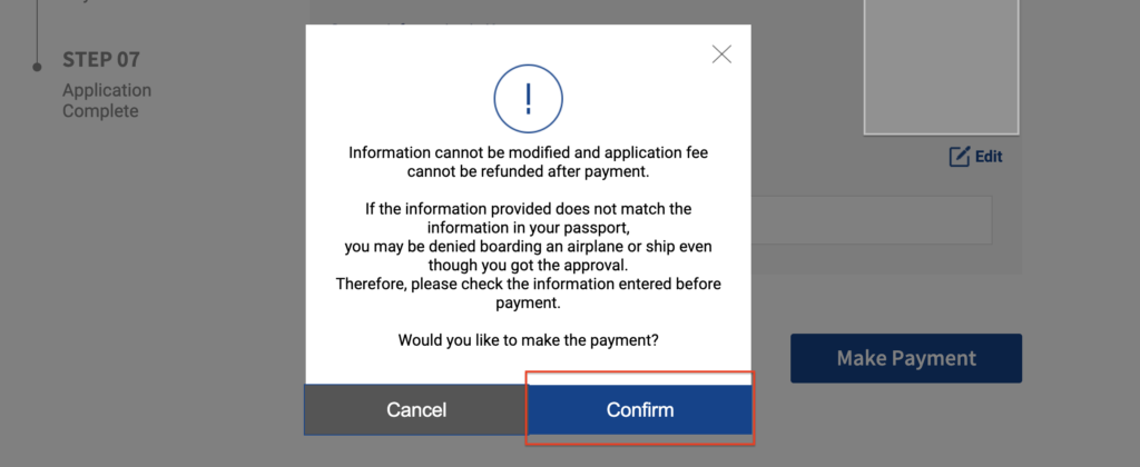 そうするとポップアップが出てきます。こちらは自分でもアップした写真を確認してくださいと書かれてます。Confim(同意する)を押して次へ進みます。