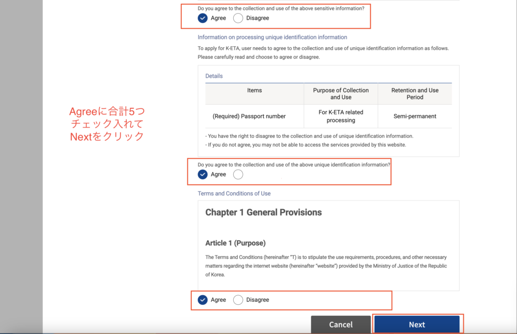 そして、・Agree ・Disagreeとあるので、全部Agreeにチェック入れてNext押しましょう。