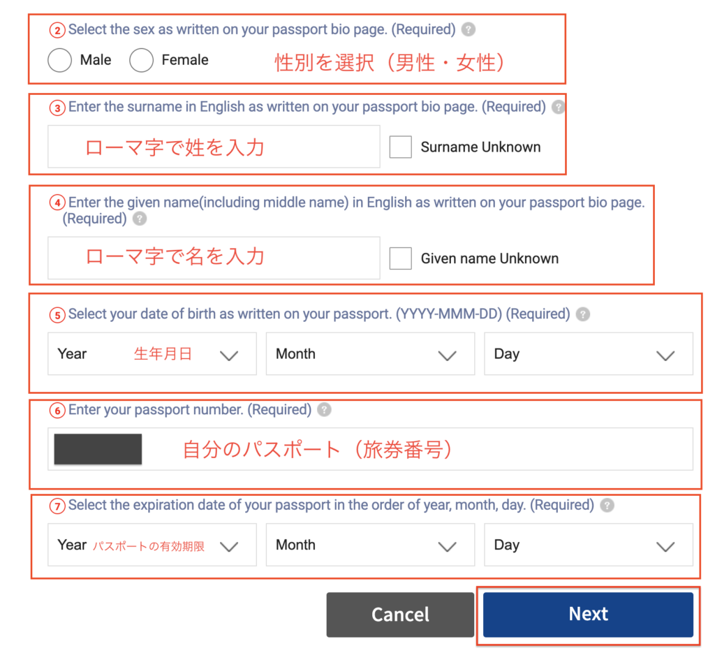 自分のパスポート(旅券番号)を上に入力します。