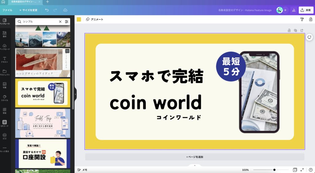 今僕が使っている「Canva」ですと、時短+作業ストレスが少ない形で作業出来ます。