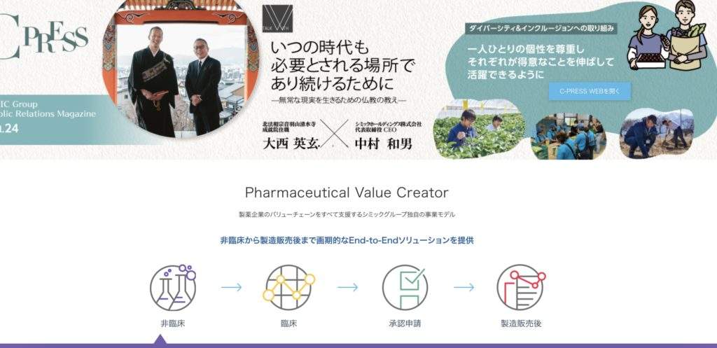 こちらの会社はCDMO(医薬品製剤開発・製造支援)事業、CSO(医薬品営業支援)事業、ヘルスケア事業、IPM(Innovative Pharma Model;新しいプラットフォーム型製薬)事業を行っています。
